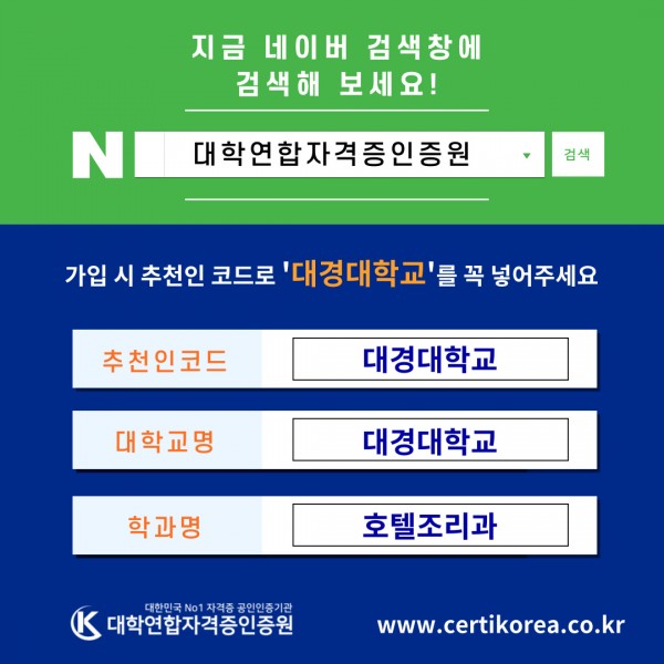 - 네이버검색 : 대학연합자격증인증원