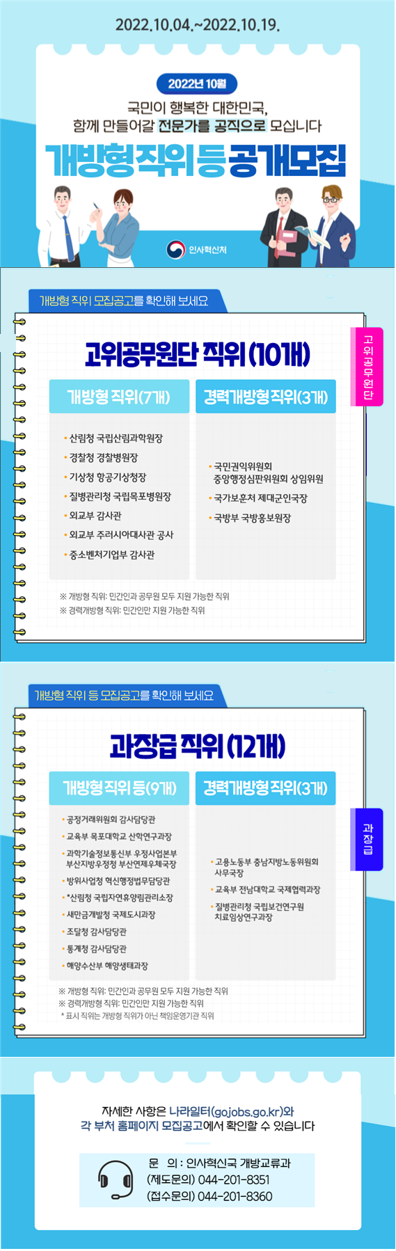 가. 채용분야 및 인원: 고위공무원단 직위 10개, 과장급 직위 12개
