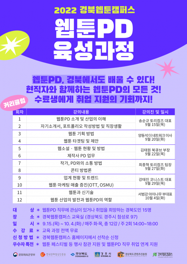 경북웹툰캠퍼스 '육성과정(웹툰PD)' 지원자 모집