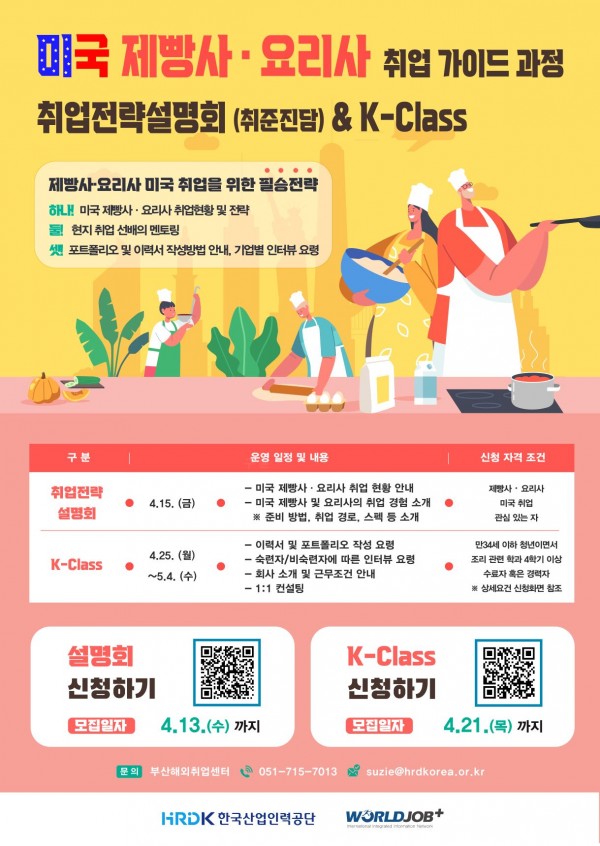 2022년 4월 미국 제빵사 및 요리사 취업전략설명회&K-Class 운영 알림