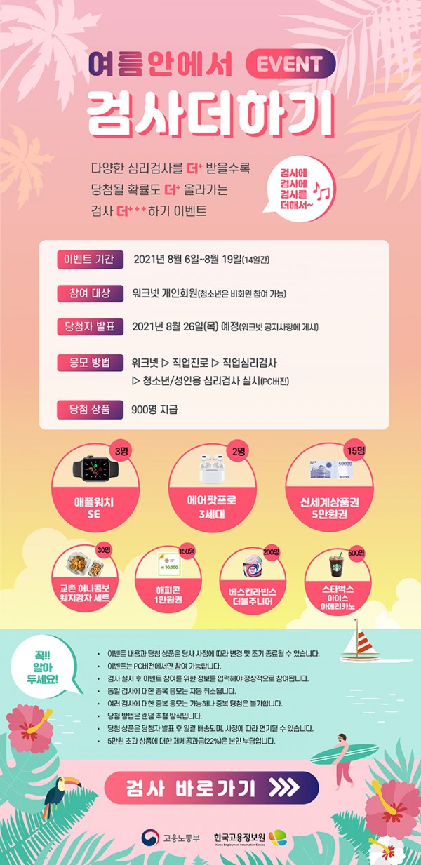 1) 이벤트명: 워크넷 직업심리검사 실시 이벤트(여름안에서, 검사더하기!)