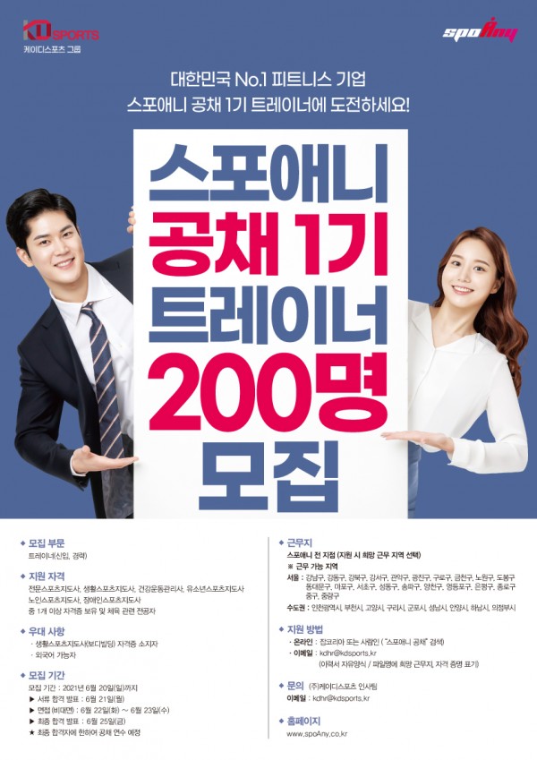 - 이메일: kdhr@kdsports.kr (이력서 자유양식/ 파일명에 희망근무지, 자격 증명 표기)