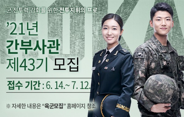 육군간부 모집('21년 육군 간부사관 제43기 모집)
