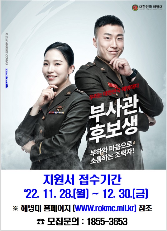 - 인터넷 접수, [대한민국 해병대]-[해병대모집]-[지원서작성] / 접수 마감: '22. 12. 30.(금) 10:00